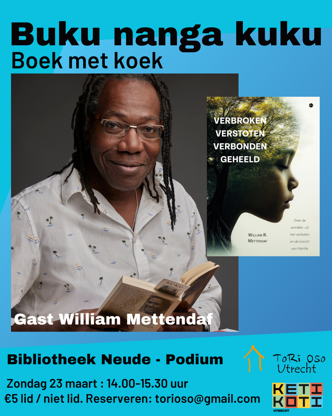 Sinds 2012 organiseert Tori Oso Utrecht Buku nanga kuku sessies, oftewel Boek met koek in het Nederlands. Het concept: het boek, de (Surinaamse) koek, de auteur en het publiek. Laagdrempelig en voorbereiding of voorkennis van het boek of de auteur is niet nodig.